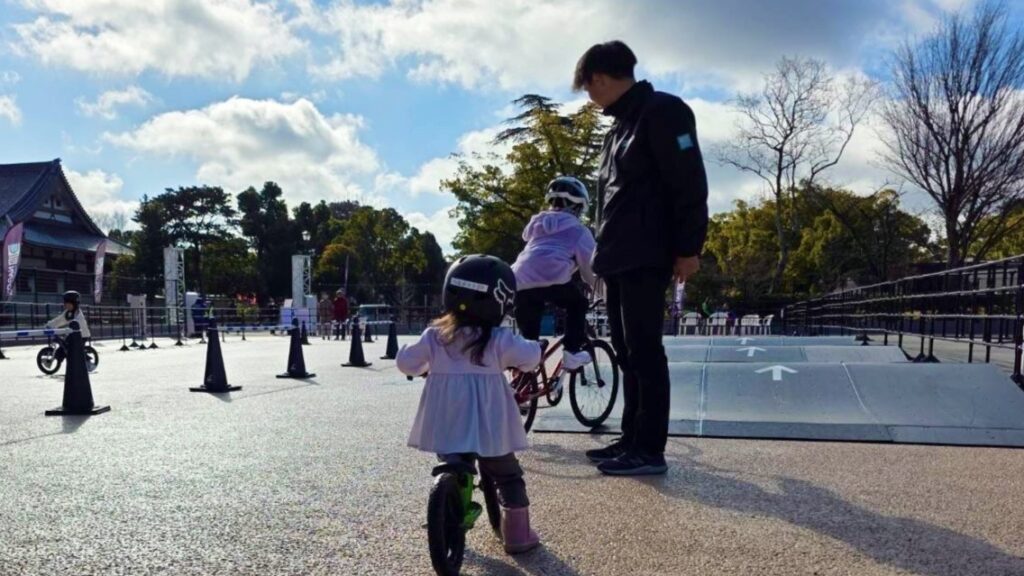 スタッフのサポートを受けながらコースに挑戦!走り終えた後には笑顔が溢れていました🚴