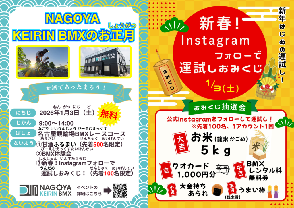 【内 容】「甘酒ふるまい」「新春!Instagramフォローで運試しおみくじ!」「BMX体験会」