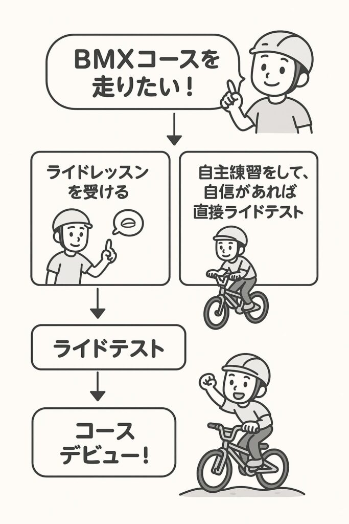BMXの乗り方からコースに乗る時のポイントやアドバイスを受けたい方は是非ライドレッスンをご予約ください!